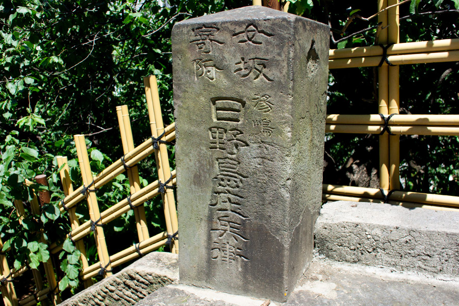 女坂の上部には、明治25年(1892年)に建立された石碑が残されています。